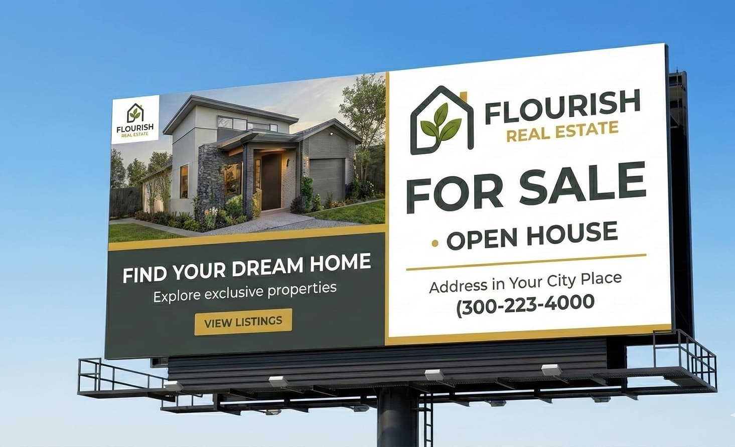 A timeless logo that positions Flourish Real Estate as a trustworthy and forward-thinking brand, ready to compete confidently in the real estate market.